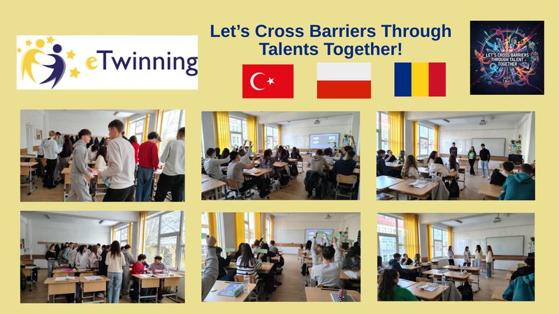 Proiectul eTwinning „Let’s Cross Barriers Through Talents Together!” își propune să valorifice talentele elevilor și să creeze un mediu educațional în care arta, literatura, muzica și sportul devin instrumente importante pentru dezvoltarea personală. Printr-o serie de activități colaborative desfășurate pe parcursul mai multor luni, elevii și profesorii implicați au ocazia să își dezvolte competențele digitale, sociale și culturale, să descopere noi metode de învățare și să colaboreze într-un context educațional internațional.