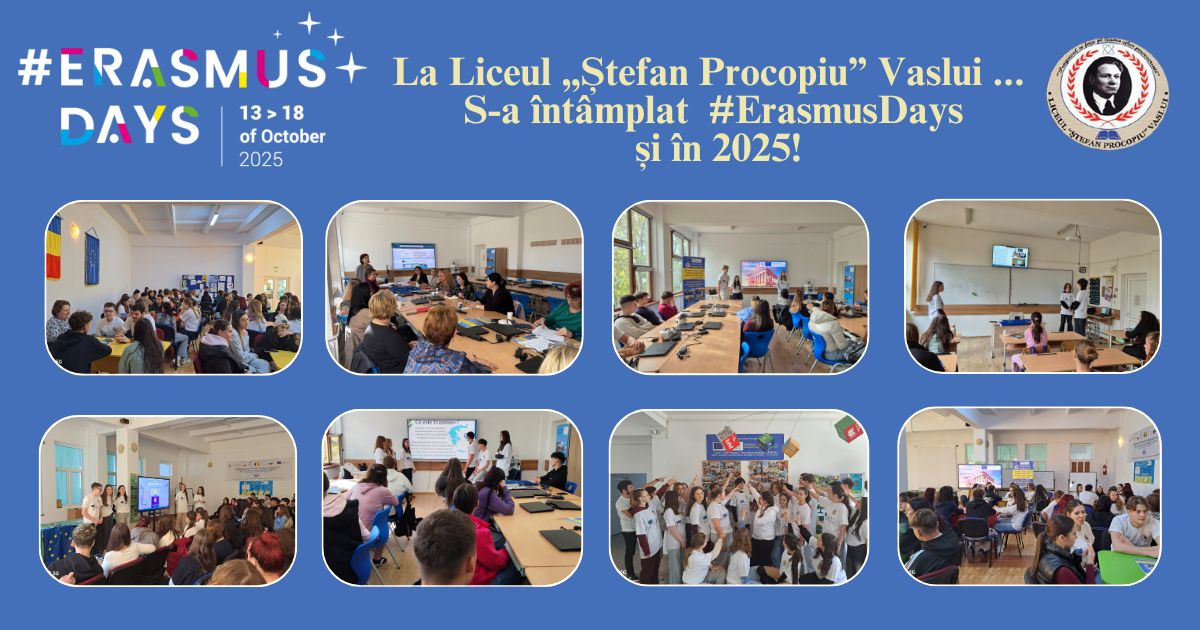 Ediția ErasmusDays 2025 de la Liceul „Ștefan Procopiu” Vaslui a fost, și de această dată, o sărbătoare a colaborării, a învățării și a spiritului european. Activitățile desfășurate au demonstrat continuitatea și maturitatea parcursului școlii în cadrul programului ERASMUS+, dar și dorința permanentă de a transforma experiențele trăite în noi oportunități de creștere.