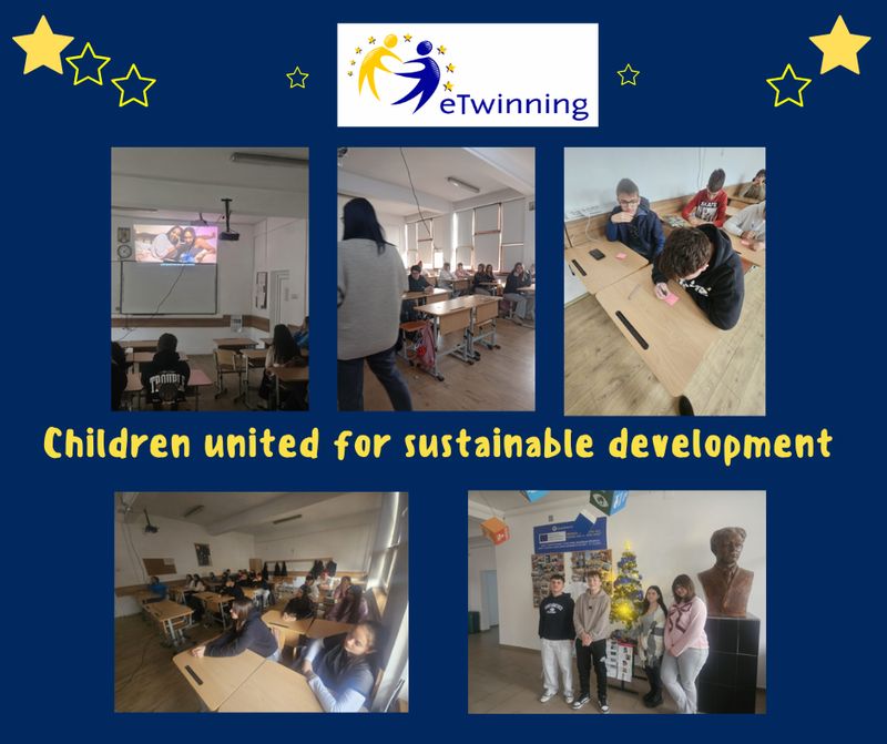 Proiectul internațional „Children united for sustainable development” reunește elevi și profesori din Italia, Turcia, Grecia și România într-un efort comun de a promova Obiectivele de Dezvoltare Durabilă (ODD) cuprinse în Agenda 2030. Obiectivul central al proiectului este familiarizarea tinerilor cu aceste obiective esențiale, înțelegerea interdependenței lor și a modului în care se raportează la marile provocări globale ale lumii contemporane. Prin activitățile desfășurate, proiectul vizează, de asemenea, îmbunătățirea competențelor digitale, perfecționarea comunicării și a colaborării în contexte internaționale, stimularea creativității și dezvoltarea gândirii critice.